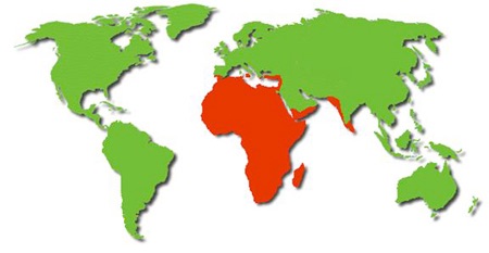 Old world chameleons of the family Chamaeleonidae are generally ascribed to continental Africa and Madagascar. This family inhabits the majority of this area with the exception of some of the most inhospitable regions of the Sahara. They are also known from many of the islands in the area including the Comoros, Mauritius, Reunion and the Seychelles. The common or European chameleon, Chamaeleo chamaeleon, is also known to occur in Southern Portugal and Spain, Greece, Crete, Cyprus, Malta, Sicily, Turkey, Israel, Jordan, Lebanon and Syria among other regions. Chameleons are also known to inhabit the southern Arabian Peninsula and along the Western coast of India and Pakistan and the island of Sri Lanka. Trioceros jacksonii xantholophus is known to have established feral populations in Hawaii, California and Florida and Chamaeleo calyptratus has been known to have feral populations in Hawaii and possibly Florida.